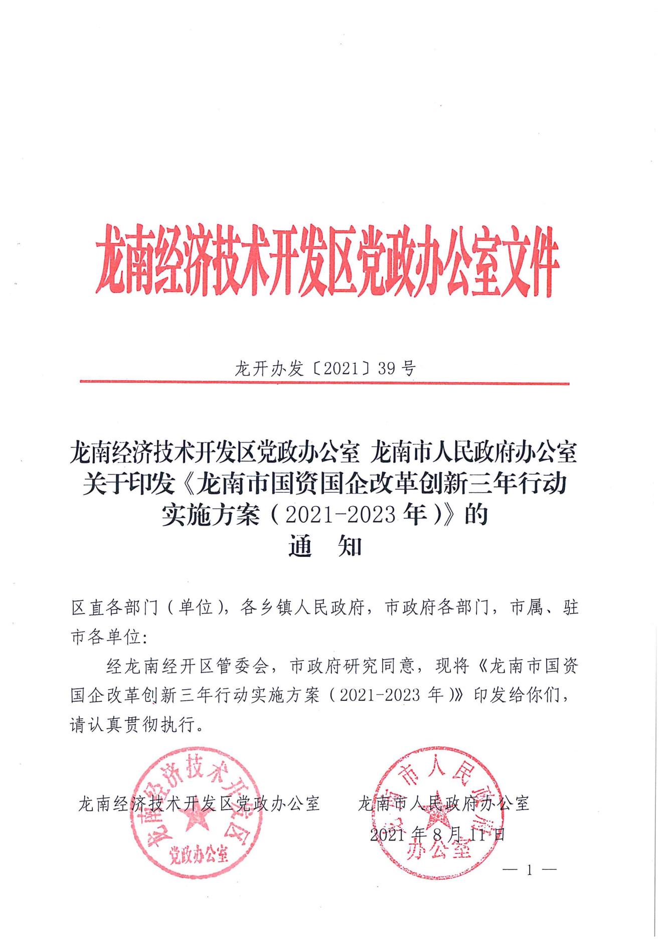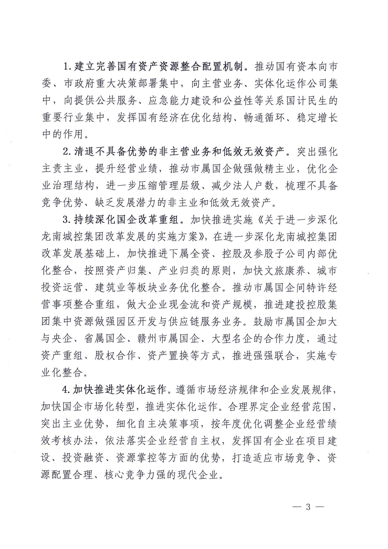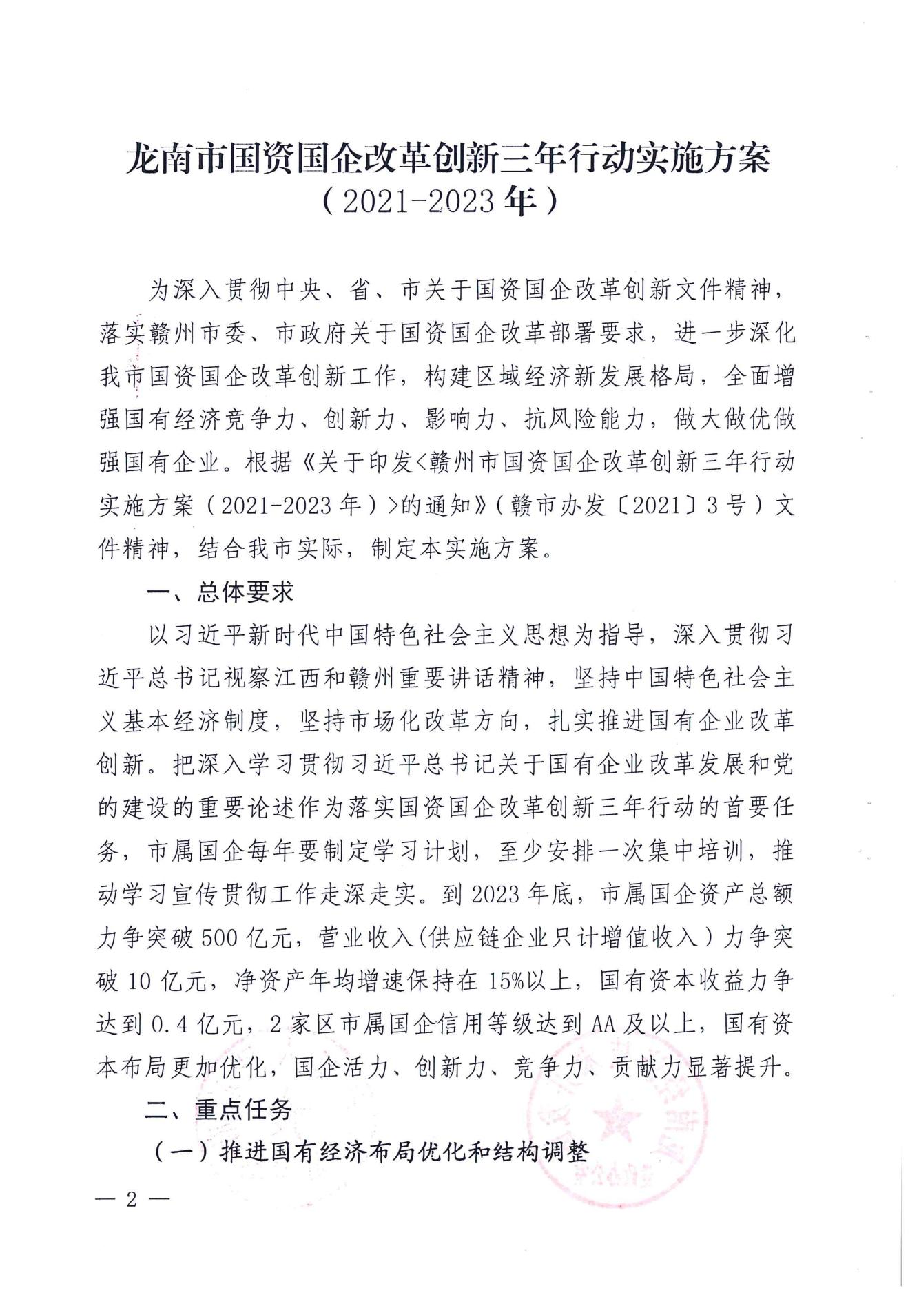 【本级政策文件】龙南市国资国企改革创新三年行动实施方案(2021-2023年)
