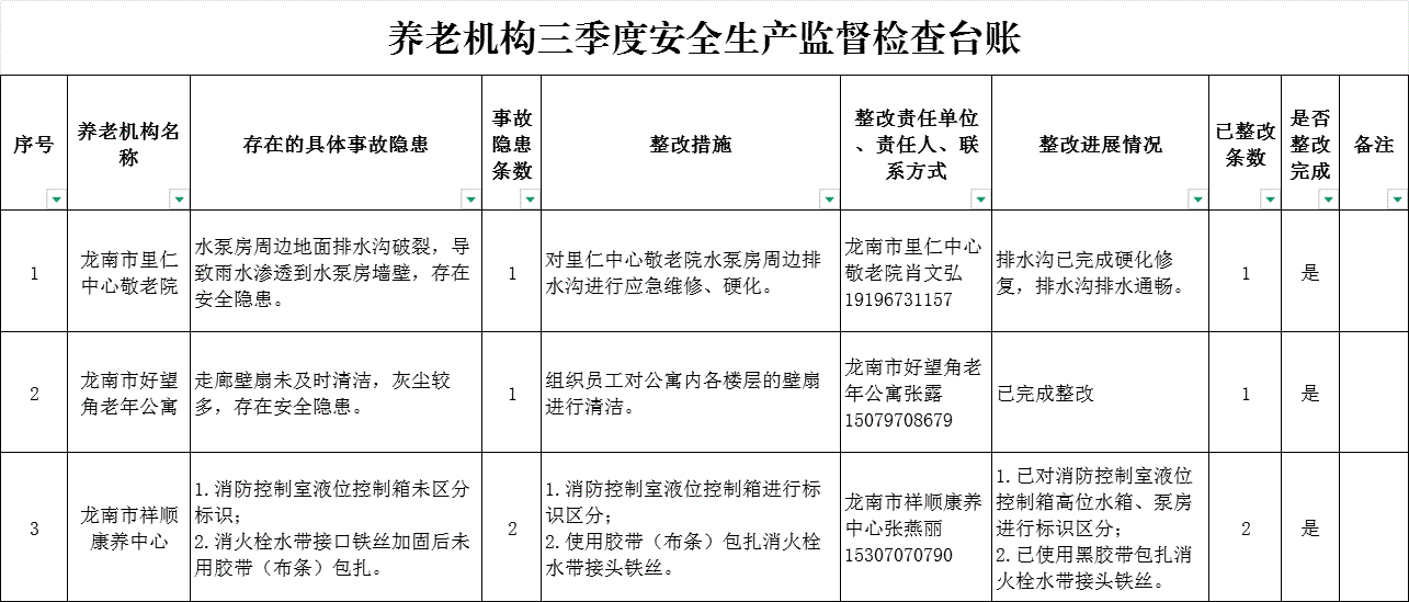 养老机构三季度安全生产监督检查台账