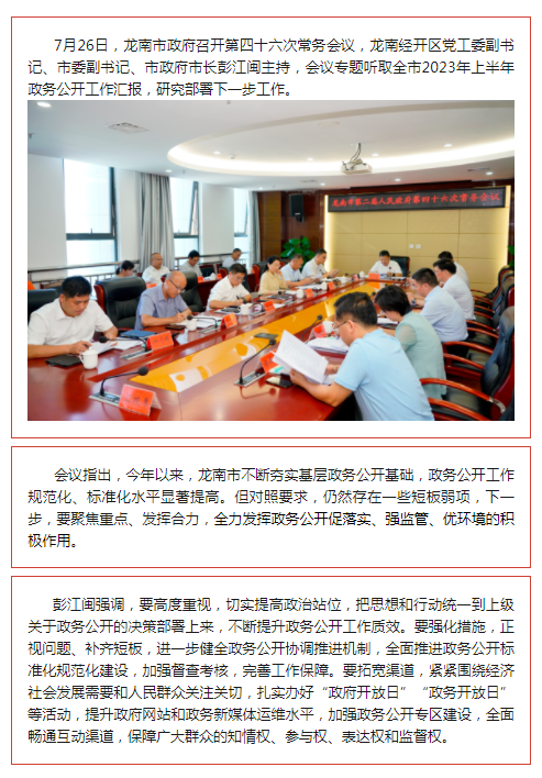龙南市政府常务会专题听取政务公开工作汇报