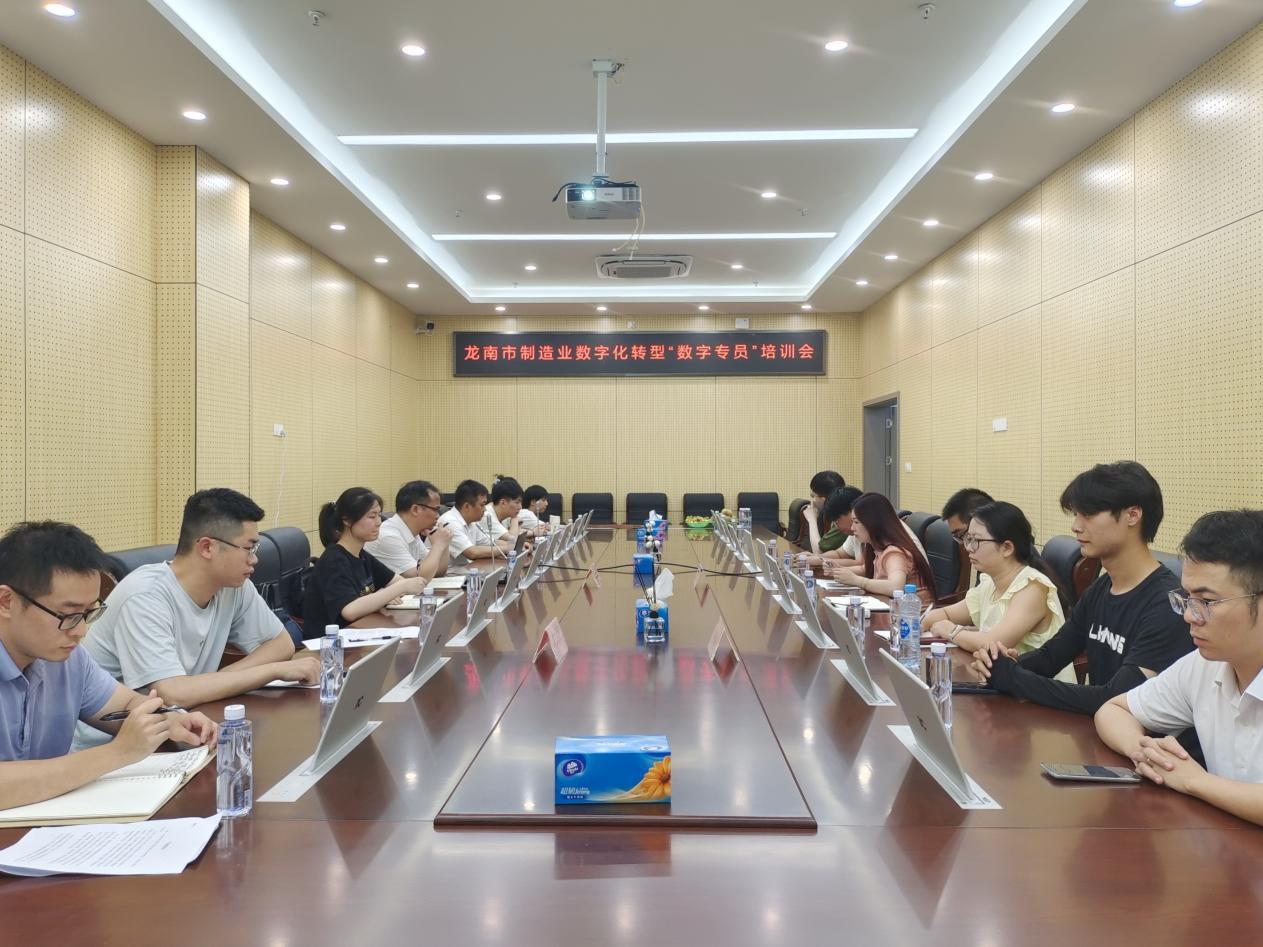 近日,龙南市工信局在中国电信中部云(龙南)数据中心组织召开龙南市制造业数字化转型“数字专员”培训会,市工信局数转专班人员及三大运营商相关工作人员参会。会议邀请了中国信息通信研究院泰尔认证研究所专家王雪和中国电信(江西)工业互联网研究院专家徐刚授课。王雪专家围绕“创新引领、价值导向助力产业数字化转型”专题开展授课,系统分析了转型内涵、政策体系、实践应用及典型案例;徐刚专家结合龙南实际就企业数字化转型路径进行深度解析。