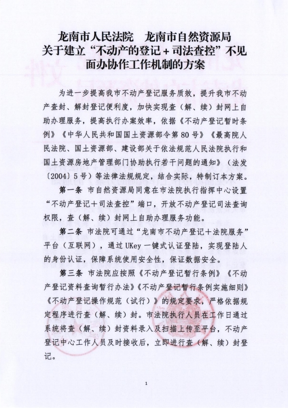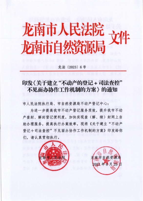 印发《关于建立“不动产的登记+司法查控”不见面办协作工作机制的方案》的通知