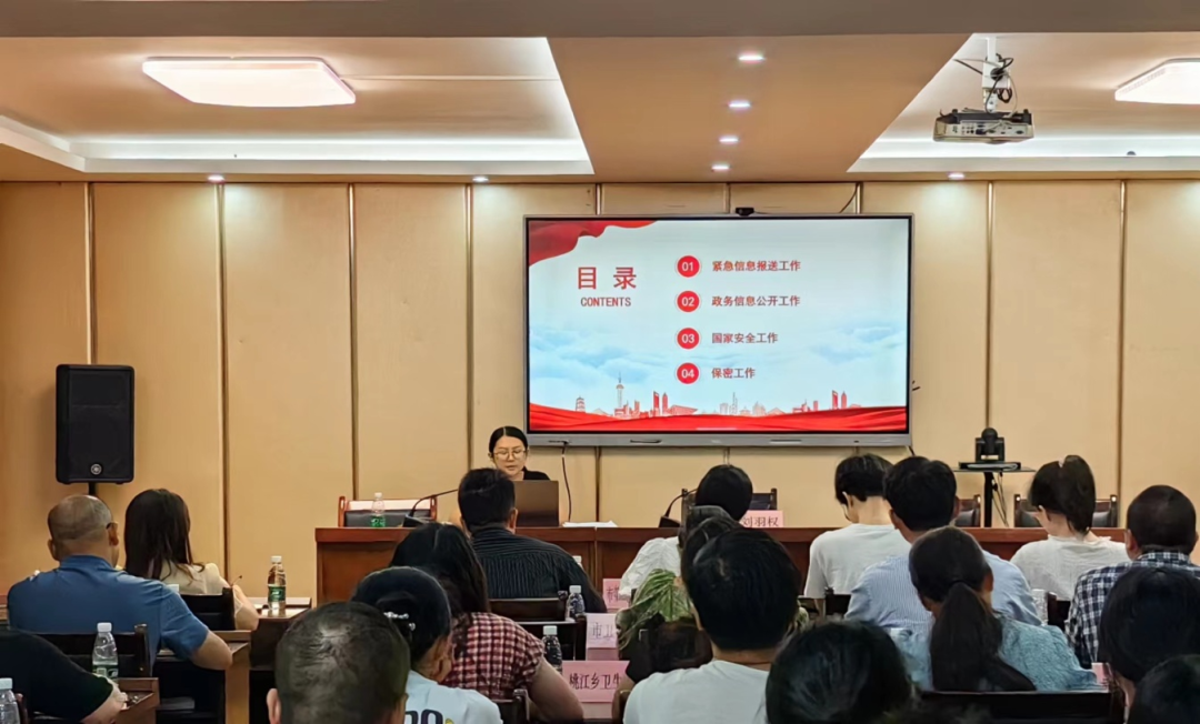 会上就紧急信息报送工作、政务信息公开工作、国家安全工作、保密工作进行了部署,同时开展了业务培训。