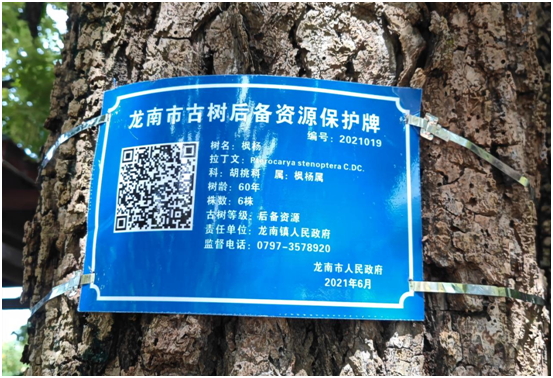 为做好龙南市省级生态园林城市创建工作,近期,龙南市林业局对建成区古树名木后备资源开展调查,对树龄为50-99年的古树进行摸排、登记,建立古树名木后备资源电子档案并挂牌进行保护。本次建成区新增古树后备资源保护树木29棵(群),其中单株9棵,群20个(计130株),主要树种为樟树、朴树、槐树和枫杨等。