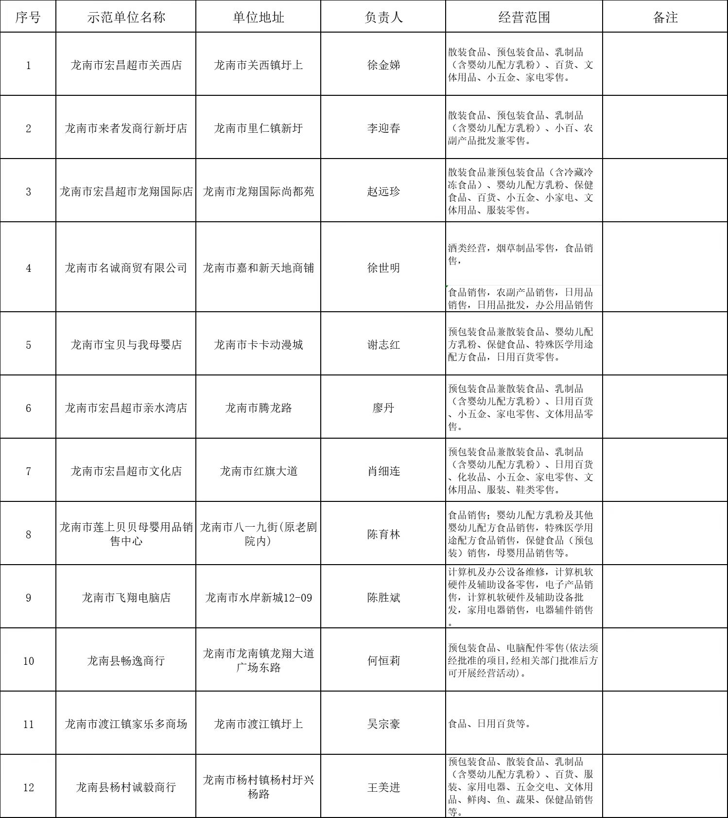 附:2023年龙南市创建放心消费示范单位名单