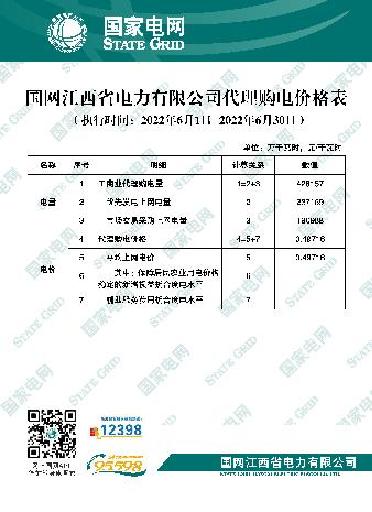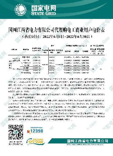 国网江西电力关于2022年6月代理工商业用户购电价格的公告