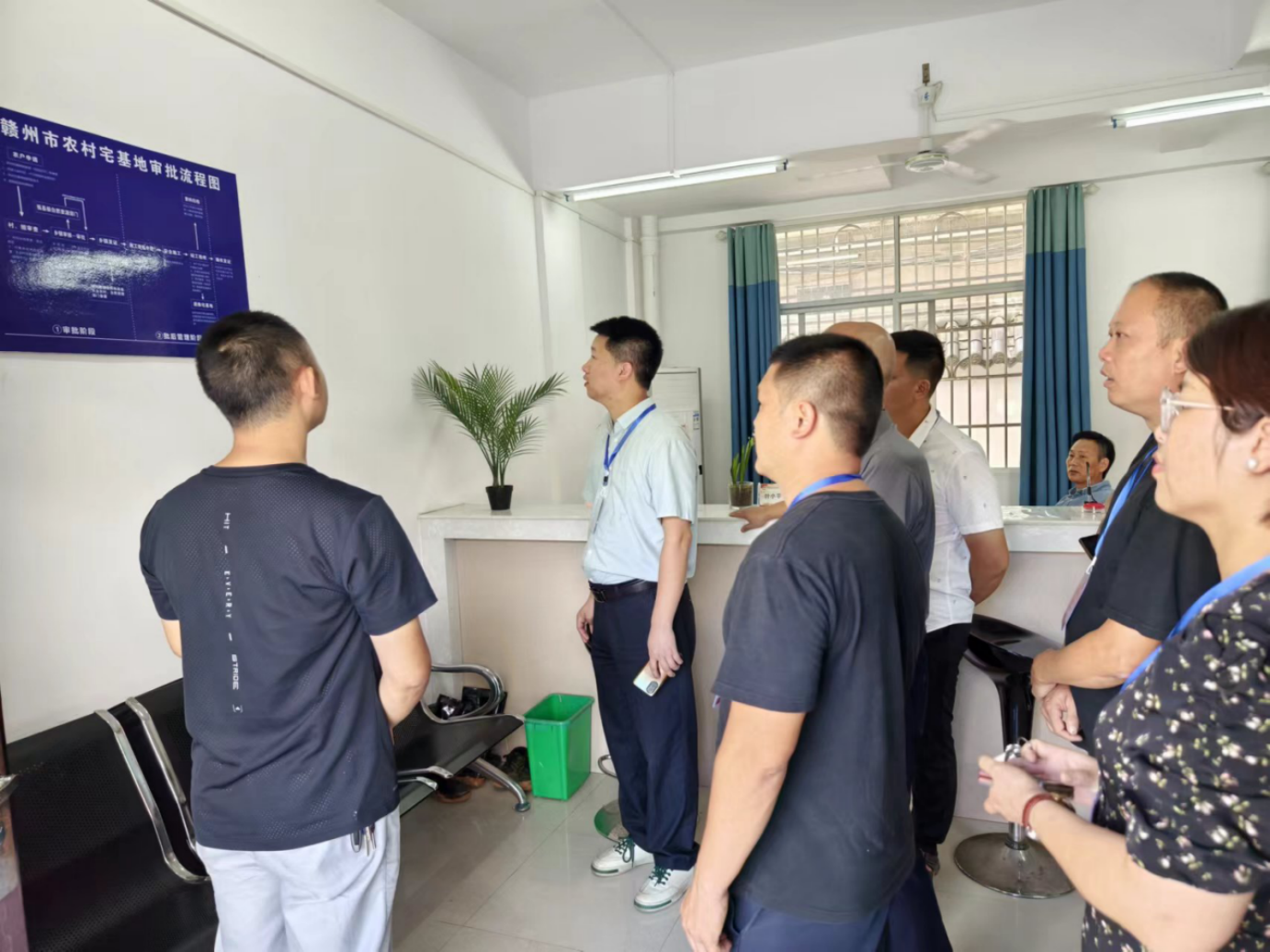 人大代表第二站来到乡自然资源综合服务中心,对农村宅基地的审批流程进行了了解,就能否在乡、村两级层面进一步优化流程,更好的便利群众,提出了意见建议。