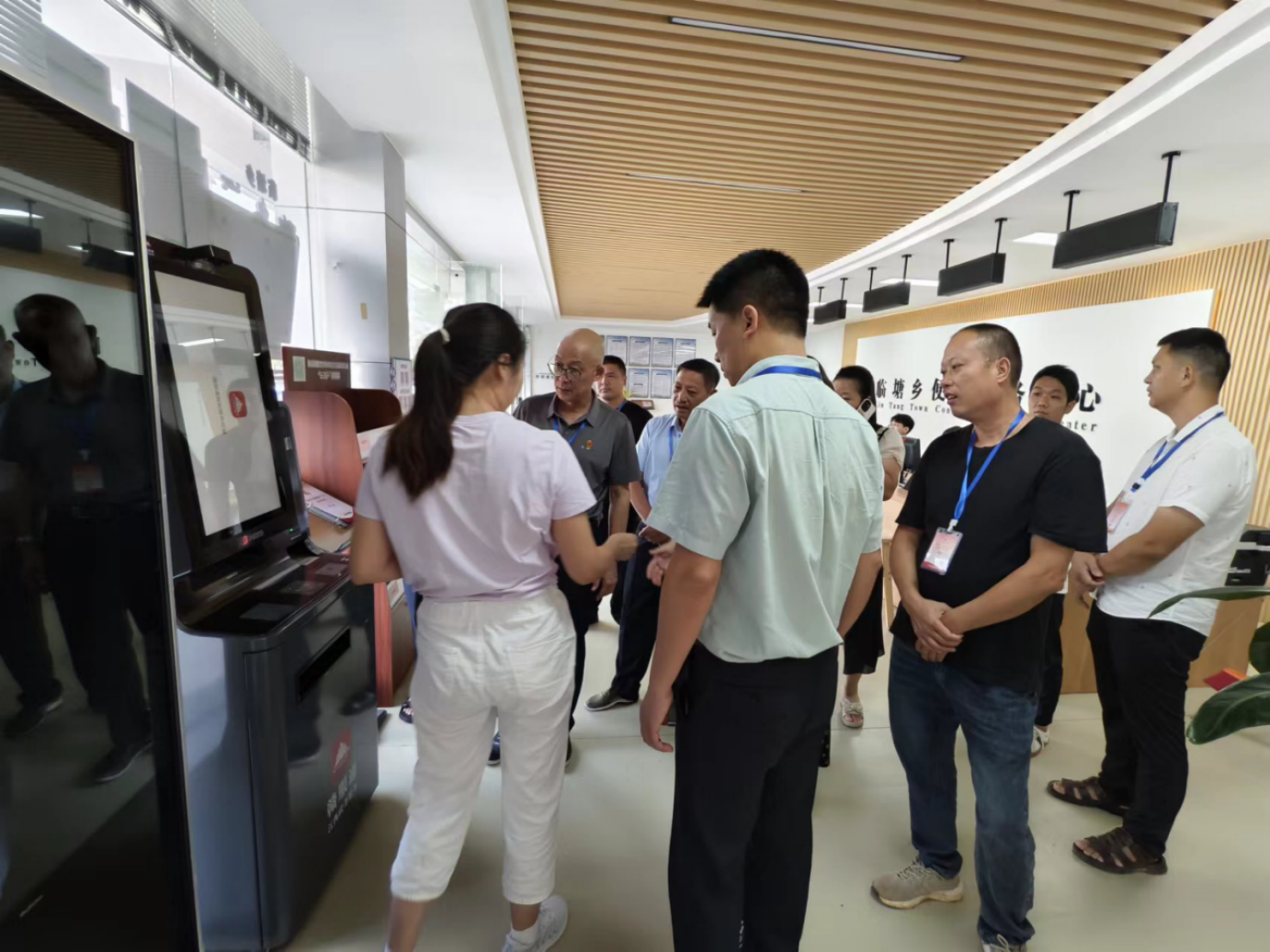 人大代表第一站来到乡综合便民服务中心,分别来到民政、医保、卫生健康、帮办代办窗口以普通群众身份,亲自体验办事流程,了解服务流程、服务态度、工作效率等方面的情况开展体验活动,并在工作人员的指导下亲自操作了赣服通智能服务终端,进行了智能身份证打印等一系列体验。