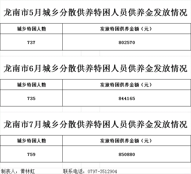 龙南市5月、6月、7月城乡分散供养特困人员供养金发放情况
