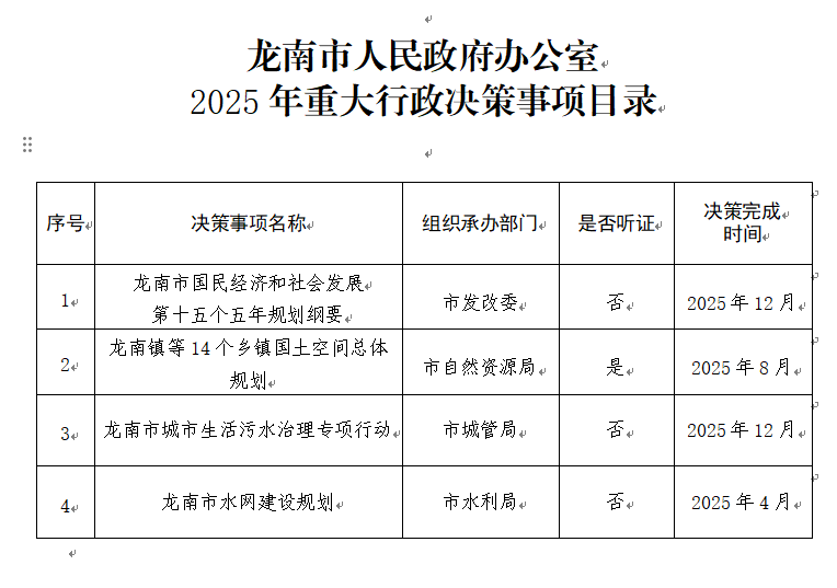 为进一步规范我市重大行政决策行为,切实加强重大行政决策目录管理,促进科学民主依法决策,提高决策质量和效率,根据《重大行政决策程序暂行条例》《江西省县级以上人民政府重大行政决策程序规定》《赣州市重大行政决策事项目录管理办法》等有关规定,经市委、市政府同意,现将《澳门十大电子游戏入口2025年重大行政决策事项目录》予以公布,并就有关事项通知如下: