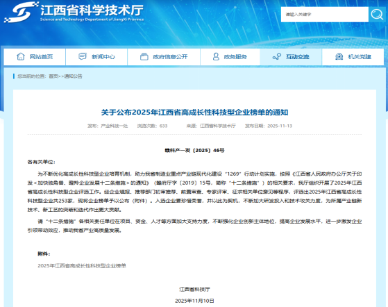 近日,江西省科学技术厅公布了2025年江西省高成长性科技型企业榜单,龙南市成果丰硕,6家企业强势上榜,总数位居前列,彰显了我市科技创新的强劲活力!