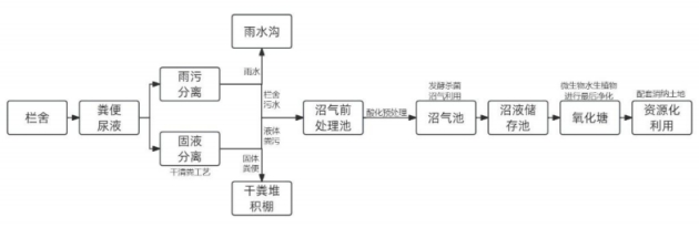 1.雨污分离通过管道或沟渠,将天雨净水与粪污水分开,栏舍粪污水进入沼气前处理池。