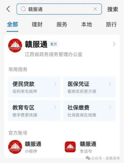 1.支付宝搜索“赣服通”或应用市场下载“赣服通”APP进入平台。