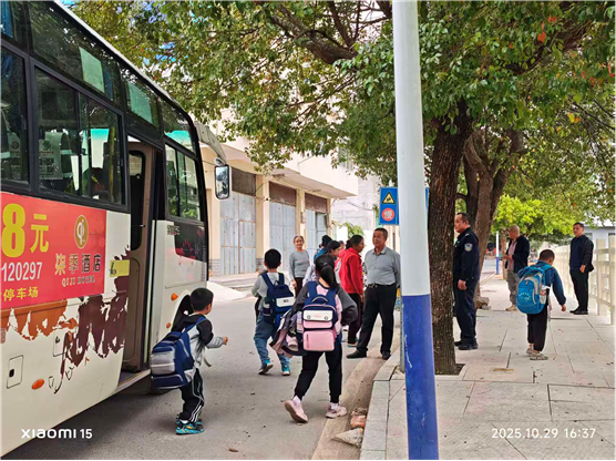 乡里精心安排乡村干部、民辅警及志愿者,每日在学生们上学、放学的固定时段,轮班值守候车点。他们不仅负责维持秩序,确保孩子们安全、顺利地上下车,还时常化身“临时家长”,提醒学生检查随身物品、注意交通安全。日复一日的坚守,让这条求学路变得格外安心。
