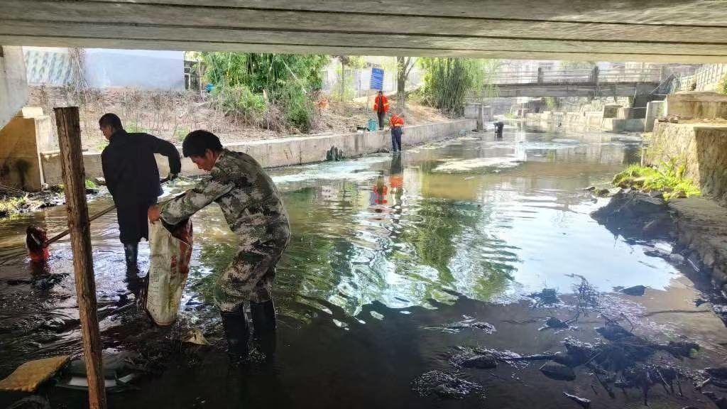清理过程中,工作人员手持长柄捞网、铁锹、垃圾袋等工具,沿河道开展“地毯式”排查与清理。大家重点打捞水面漂浮的塑料袋、饮料瓶、枯枝杂草等杂物,全面清除河道障碍,累计疏通堵塞河段3处,清理各类垃圾约2立方米,切实做到整治无死角、水面无滞留。