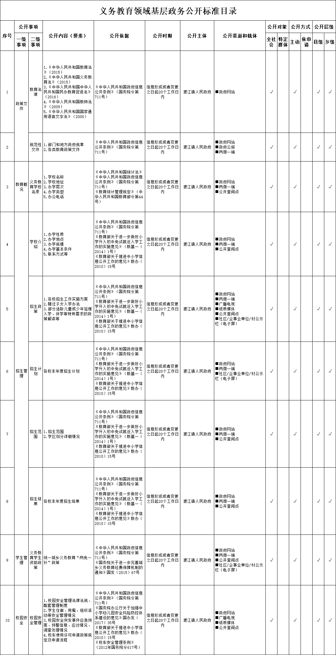 义务教育领域基层政务公开标准目录