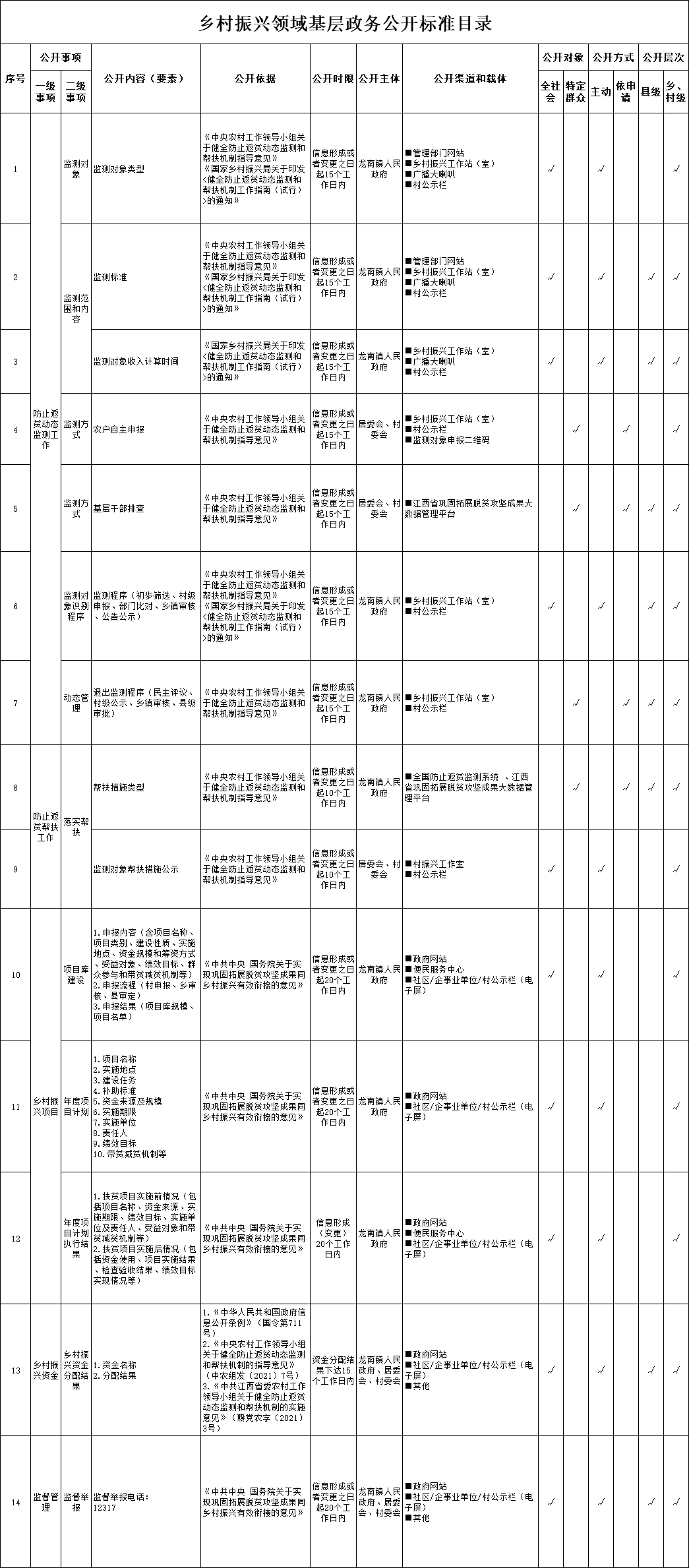 乡村振兴领域基层政务公开标准目录
