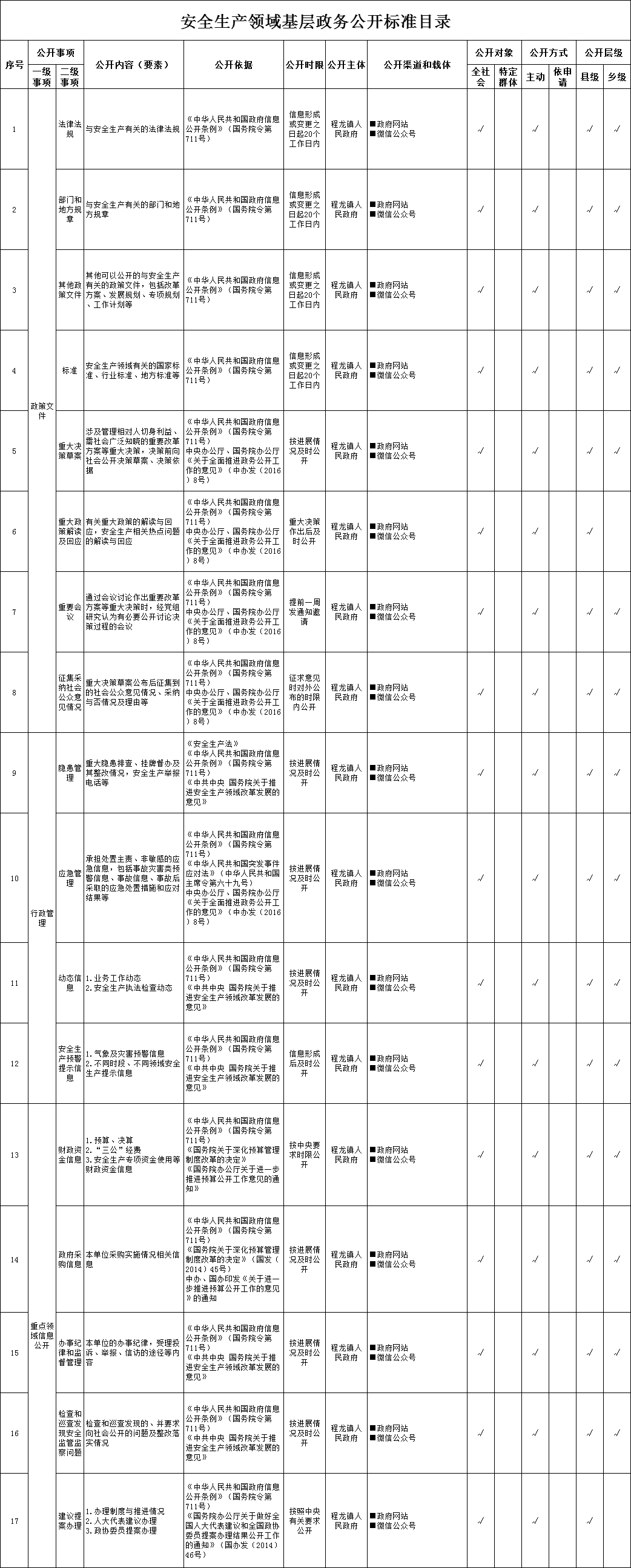 【安全生产】程龙镇安全生产领域基层政务公开标准目录