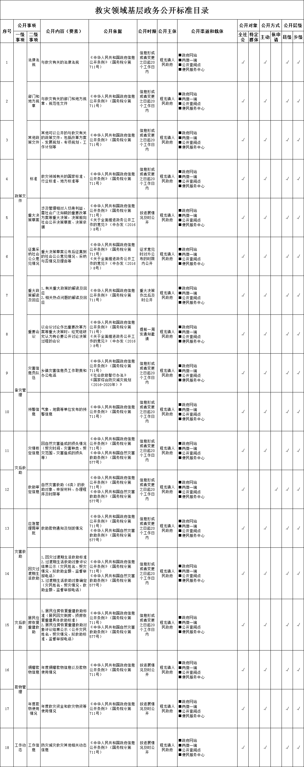 【救灾】程龙镇救灾领域基层政务公开标准目录