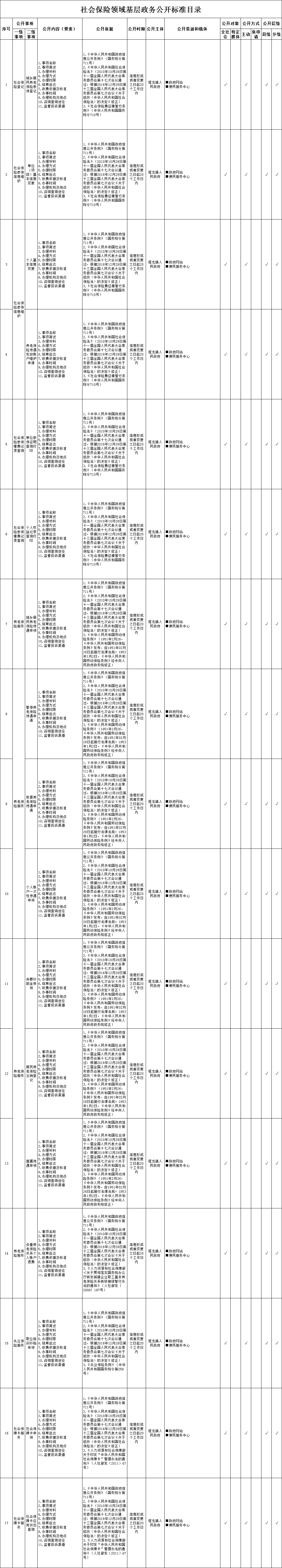 【社会保险】程龙镇社会保险领域基层政务公开标准目录