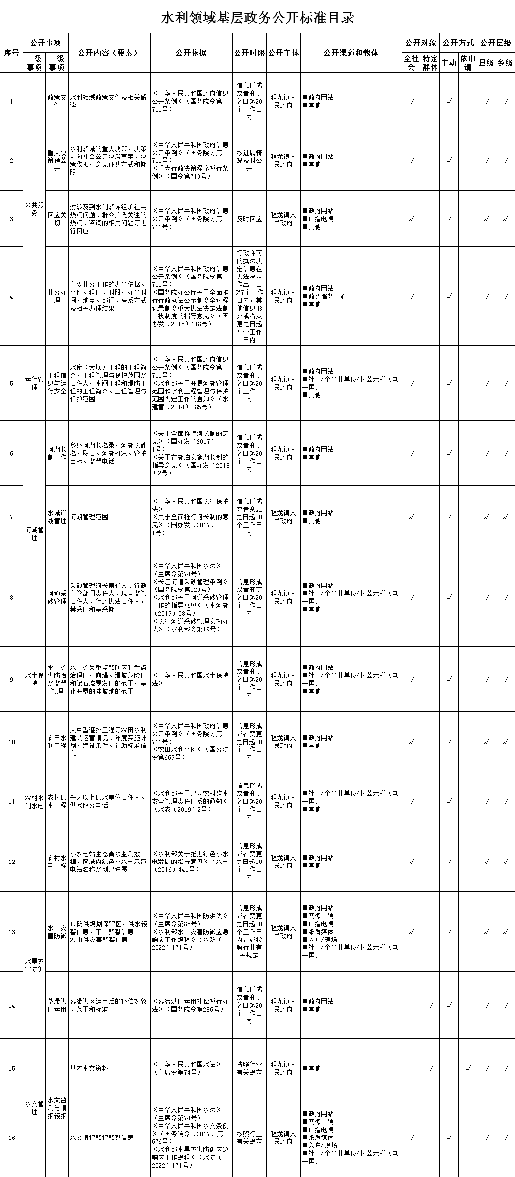 【水利】程龙镇水利领域基层政务公开标准目录