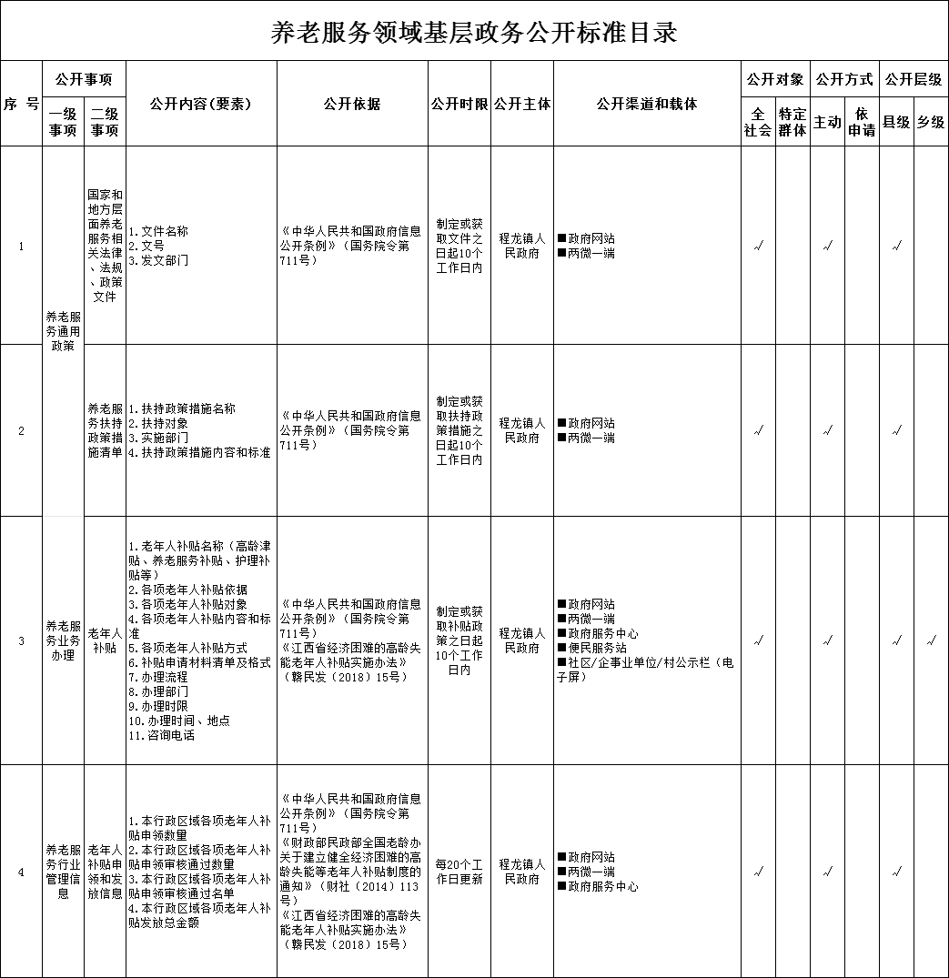 【养老服务】程龙镇养老服务领域基层政务公开标准目录