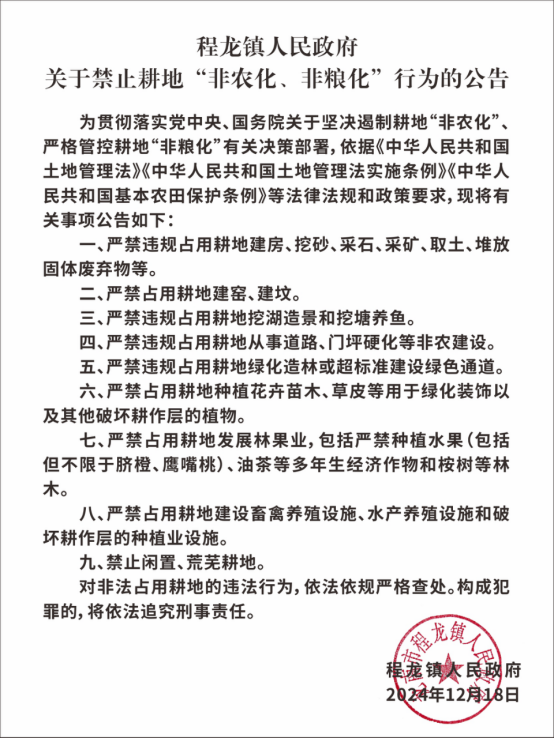 【自然资源】关于禁止耕地“非农化、非粮化”行为的公告