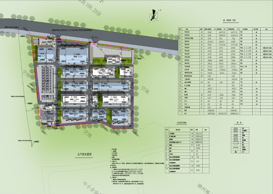江西都铂高分子材料科技有限公司年产 39 万吨环保粘合剂和功能树脂系列产品项目位于化工园区。规划用地面积72197.12㎡、总建筑面积34563.34㎡、计容总建筑面积58883.64㎡、建筑密度41.82%、容积率0.81、绿地率10%、机动车停车位57个。