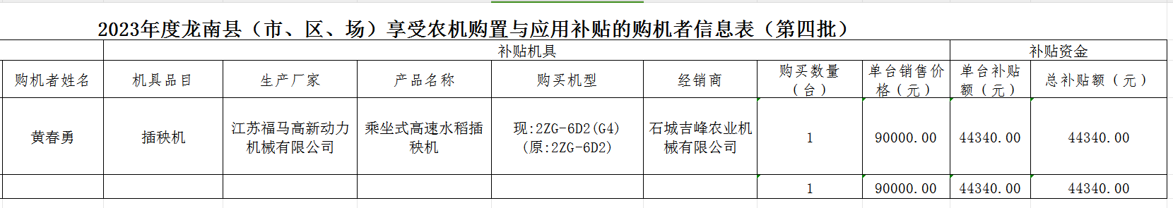 2023年度龙南市享受农机购置与应用补贴的购机者信息表(第四批)