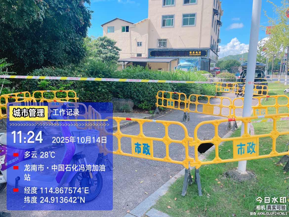 市城管局对塌方路面进行临时性围挡围护