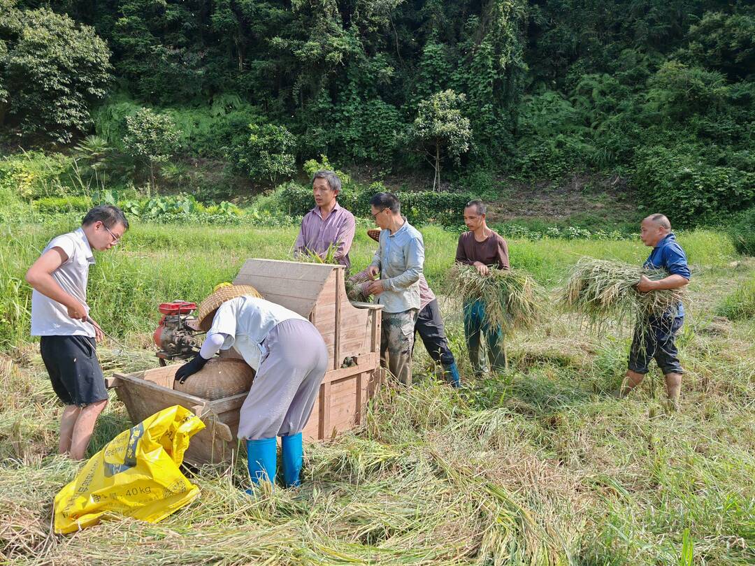 “兰书记都带头下田了,我们更得卖力!”里仁镇金莲村脱贫户钟大叔一边麻利地割稻,一边笑着说。眼下正值早稻收割冲刺期,金莲村部分农田面临着因地势无法机械化收割又劳动力不足的难题。近日,金莲村第一书记兰晓春得知情况后,迅速组织公益性人员“转岗”支援,确保8亩稻谷颗粒归仓。