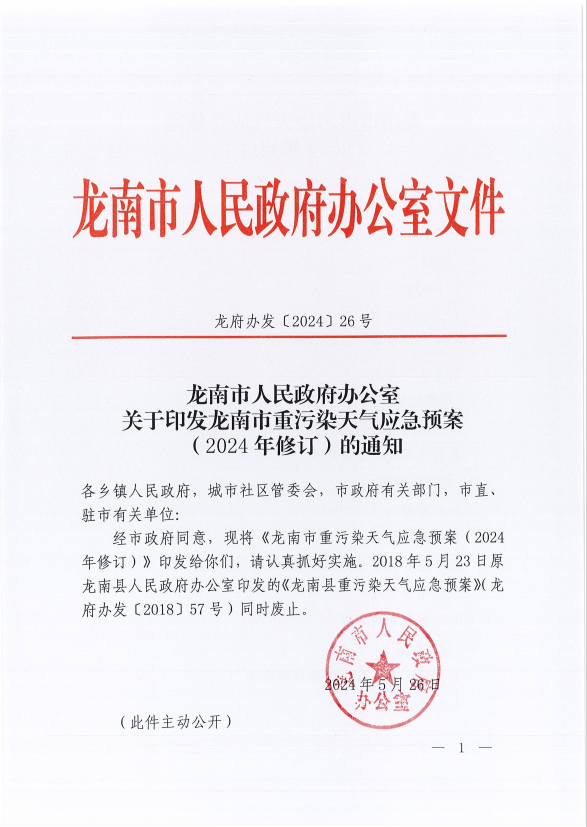 关于印发龙南市重污染天气应急预案(2024年修订)的通知