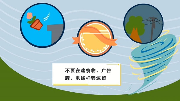 不要在建筑物、广告牌、电线杆旁逗留,谨防高空坠物。