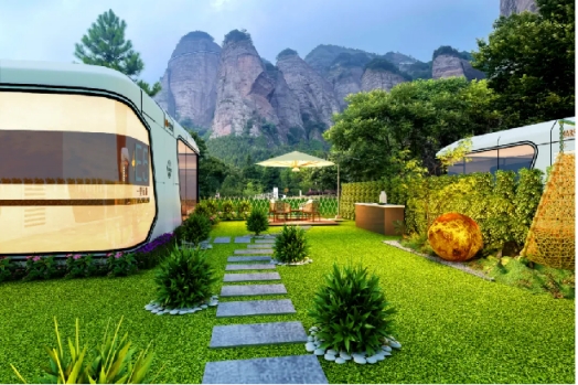 景区经过综合开发利用,融合食、住、行、游、购、娱等功能要素,目前配套有栗园·梨树下民宿、室外广场、绿化景观等,同时融入《天下客家》沉浸式实景体验演艺项目。