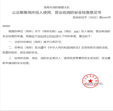 公众聚集场所投入使用、营业消防安全告知承诺许可