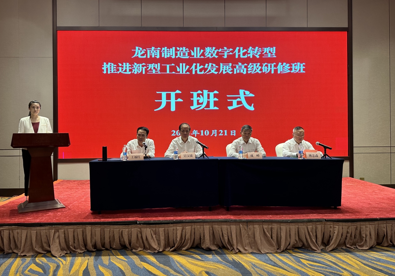 10月21日-23日,由工业和信息化部人才交流中心、龙南经开区经发局、龙南市工信局等单位联合主办的制造业数字化转型推进新型工业化发展高级研修班在杭州开班。赣州市工信局四级调研员成峰,赣州经开区党工委委员、管委会一级调研员吴汉波,赣州经开区企工局党组书记、局长熊忠森,龙南经济技术开发区经发局局长王福红出席开班式。