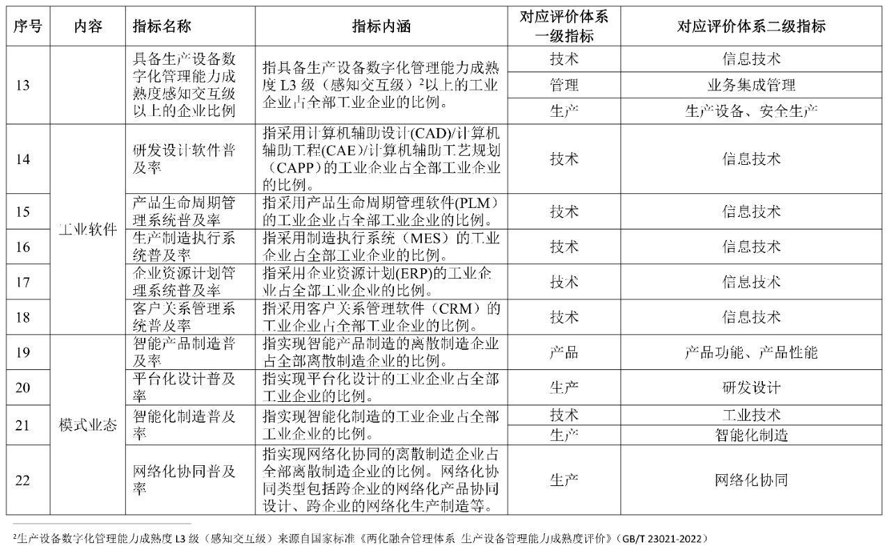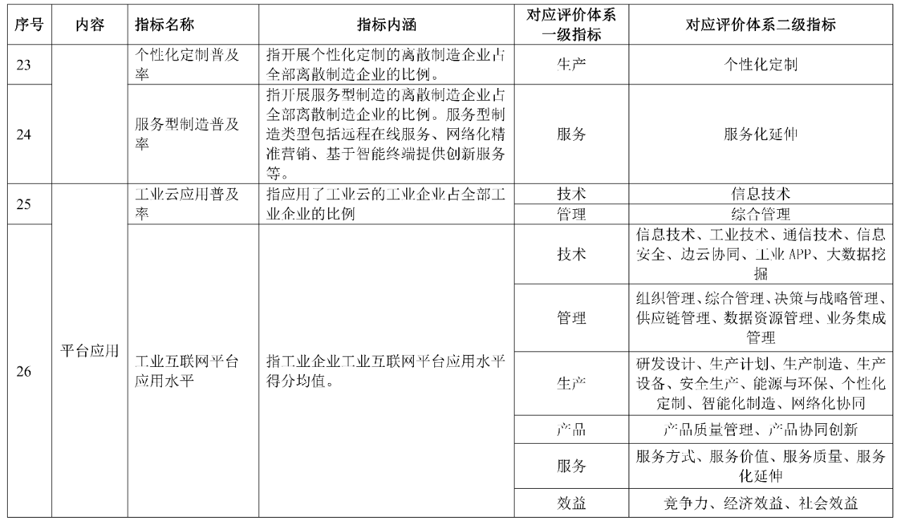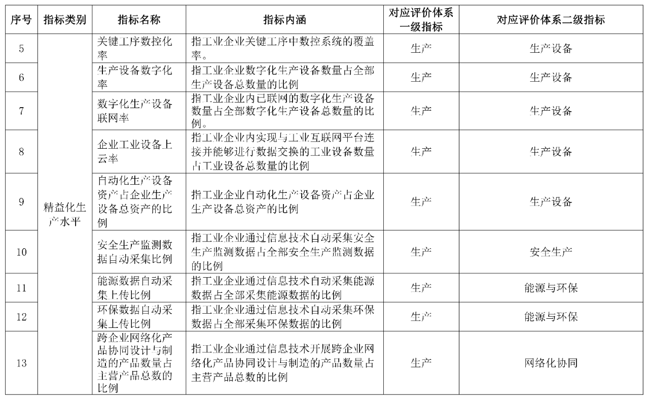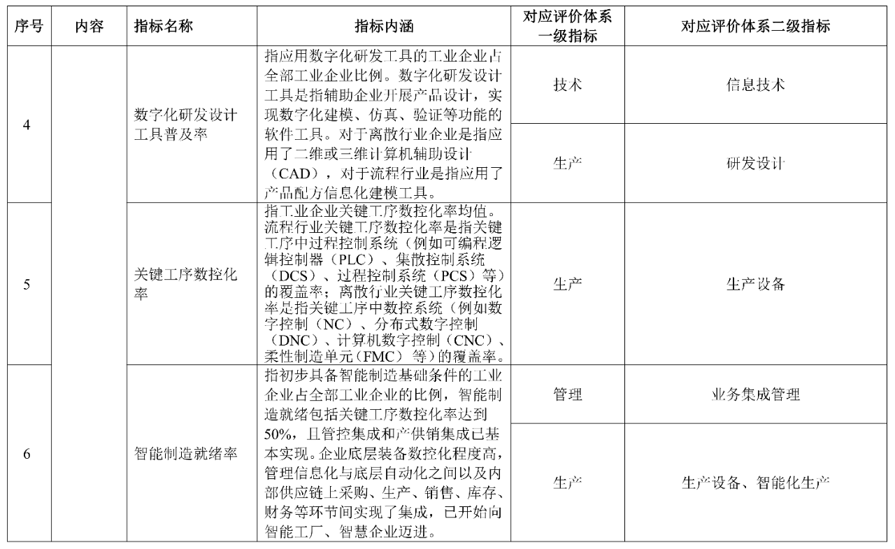 主要是评价企业在设计方式、生产方式、节能环保等方面实现数字化转型升级的水平。主要围绕研发设计、生产计划、生产过程、生产设备、安全生产、能源与环保、个性化定制、智能化制造、网络化协同等方面进行评价。