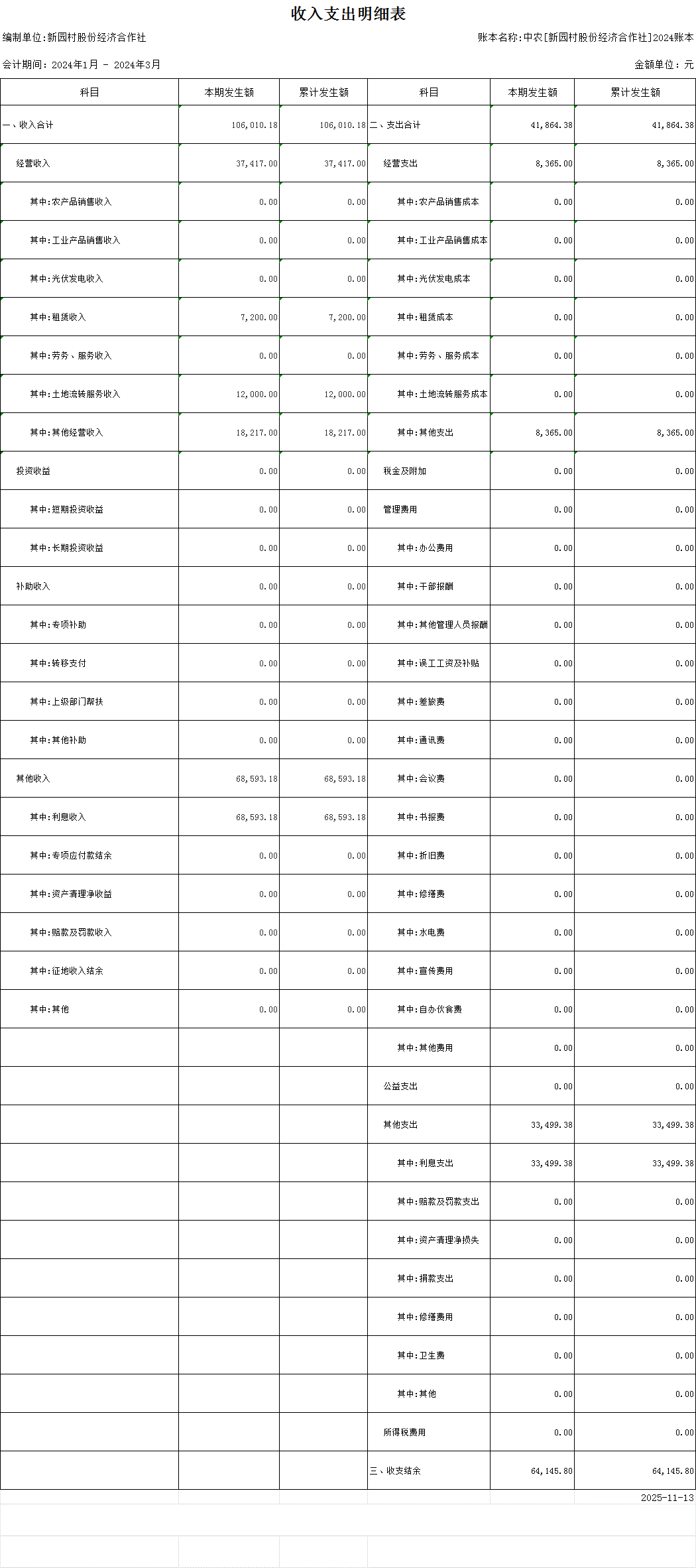 收入支出明细表
