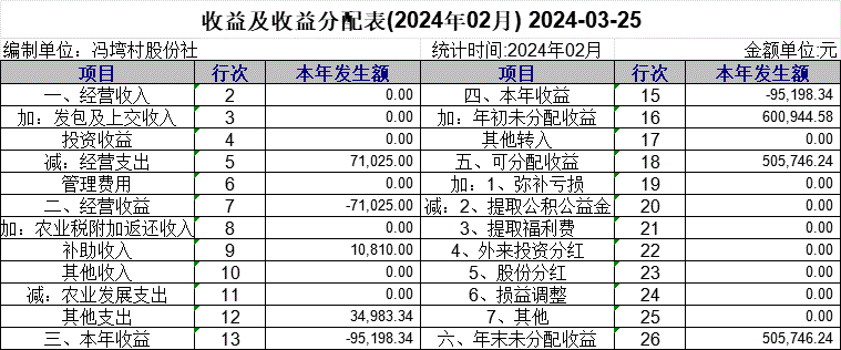 收益及收益分配表