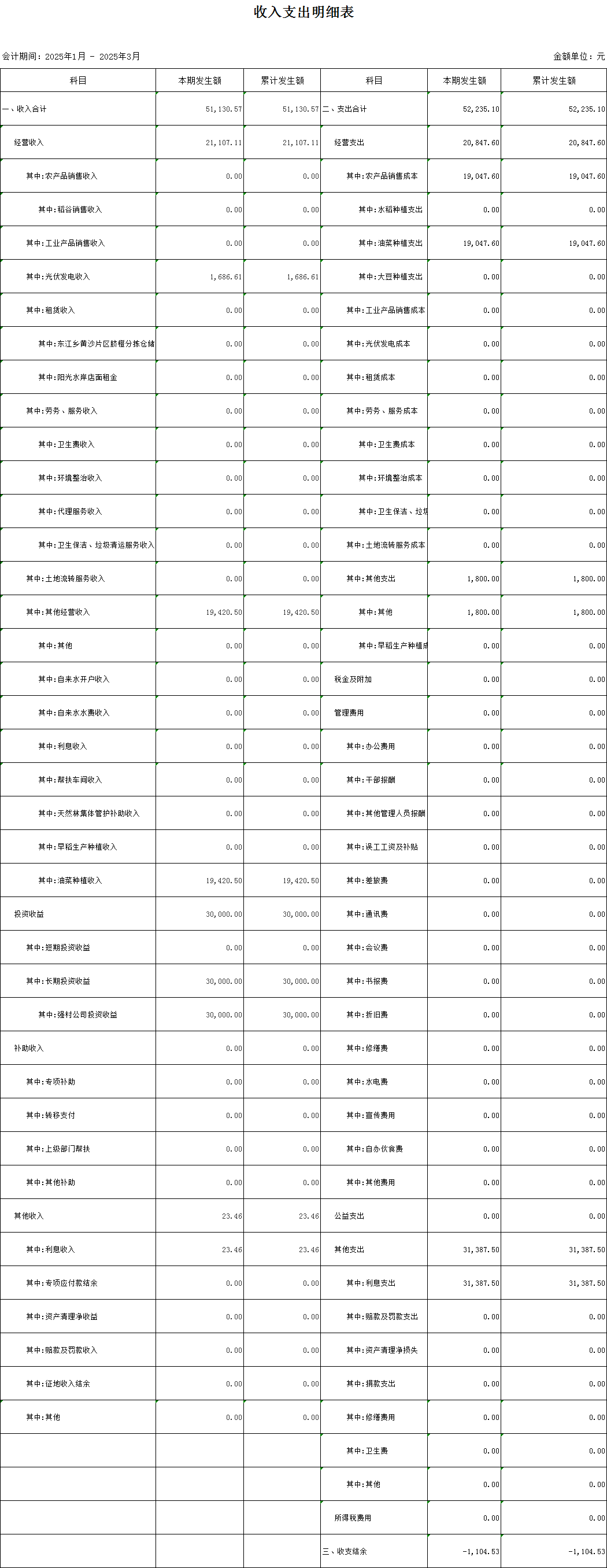 新岭村合作社村级收入支出明细第一季度