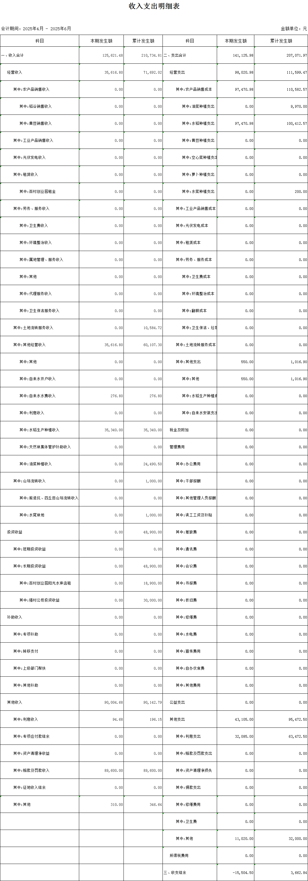 黄沙村合作社村级收入支出明细第二季度