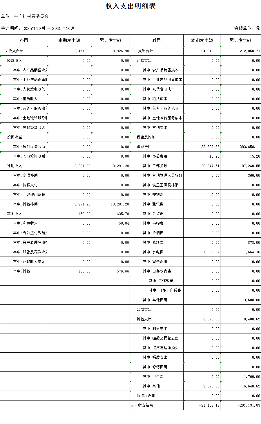 政务公开-20251111-井岗村村民委员会2025年10月收入支出明细