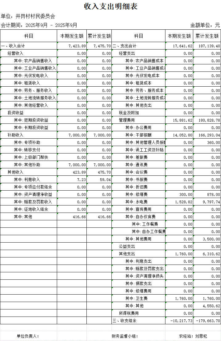 政务公开-20251114-村委会2025年9月收入支出明细表