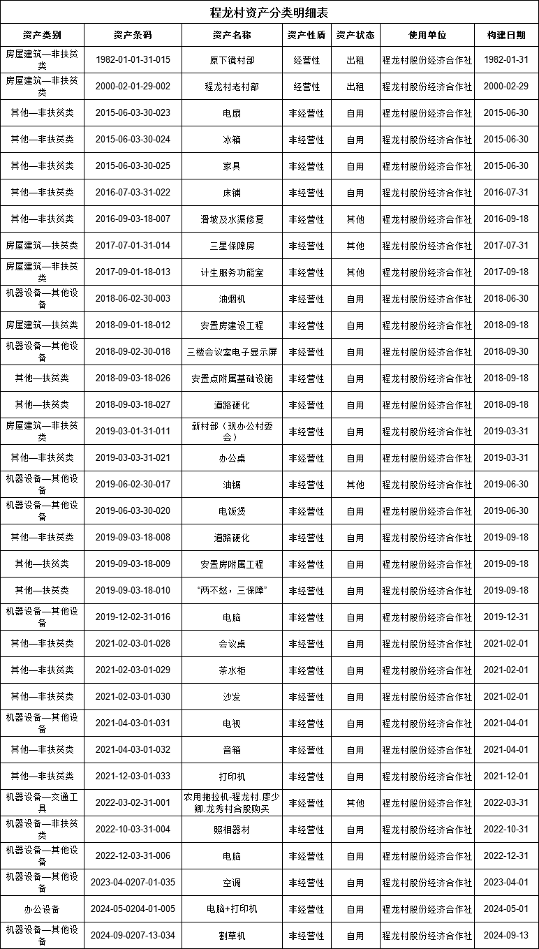 程龙村资产分类明细表